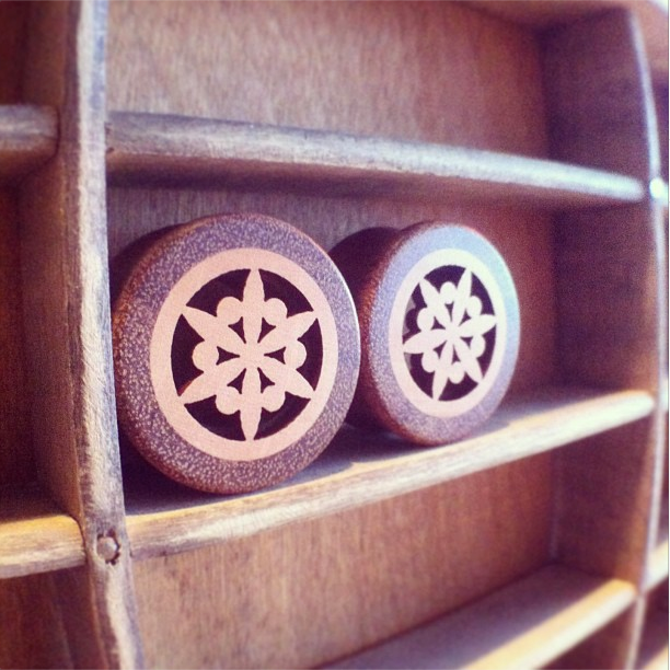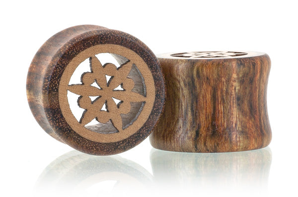 Chechen wood tunnels set with beautiful Swiss Pear cut-out inlays.